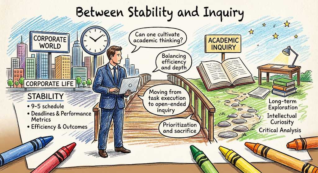 Ultimately, the feasibility of this dual pursuit depends less on structural constraints than on the alignment between one’s aspirations and one’s tolerance for limitation. A corporate employee may never experience the full immersion of academic life, yet they may still achieve a form of intellectual fulfillment that is both meaningful and sustainable. The path, in this case, is unlikely to be linear or conventional. It will be shaped by compromise, persistence, and the gradual accumulation of effort.