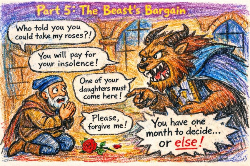 Beauty and the Beast by Andrew Lang Part 6: A Daughter’s Sacrifice The merchant accepted this proposal, though he did not really think any of his daughters could be persuaded to come. Người thương nhân chấp nhận đề nghị này, dù anh ta không thực sự tin rằng bất kỳ đứa con gái nào có thể…
