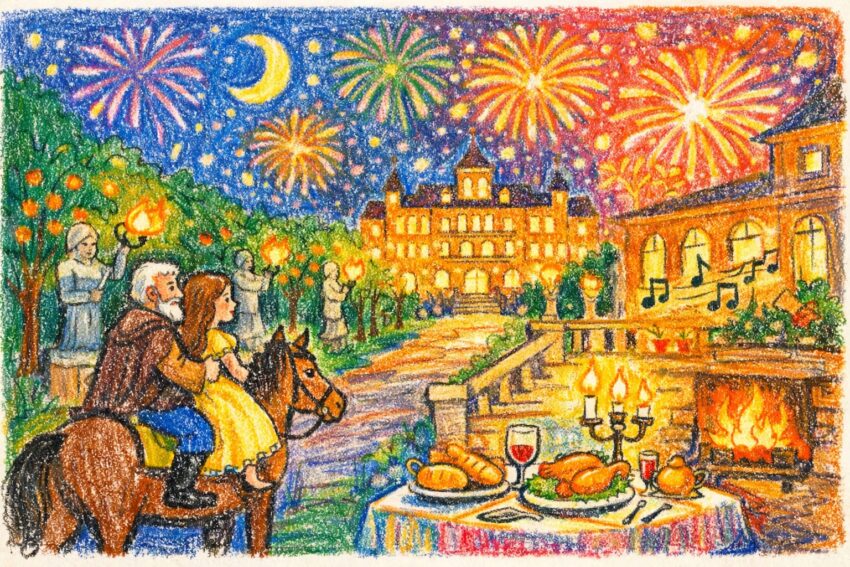 Beauty and the Beast by Andrew Lang Part 7: Arrival at the Palace Her father still tried to persuade her to go back, but in vain. Cha cô vẫn cố thuyết phục cô quay về, nhưng vô ích. While they were talking the night fell, and then, to their great surprise, wonderful colored lights began to…