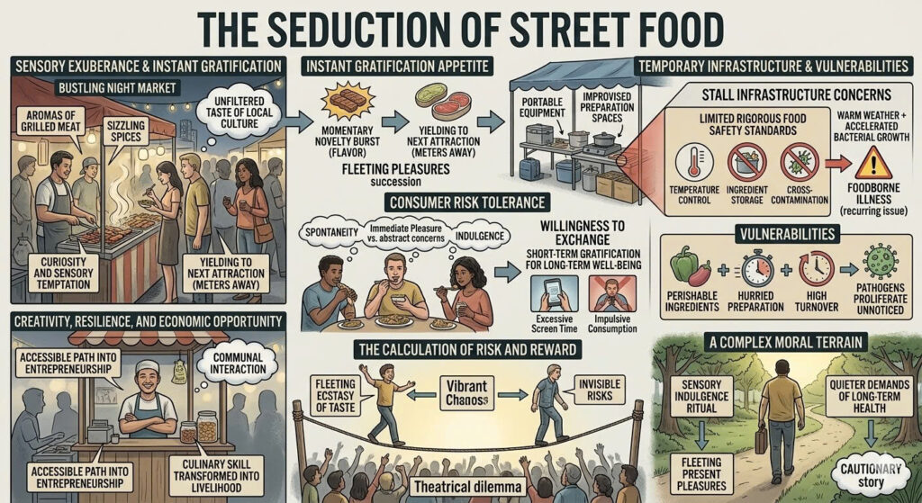 What makes this risk especially intriguing is the way in which consumers appear to accept it — often implicitly — as part of the experience. The same spontaneity that defines street food culture also encourages a degree of risk tolerance. When confronted with the choice between caution and indulgence, many diners choose the latter. The promise of immediate pleasure outweighs abstract concerns about possible consequences hours later.